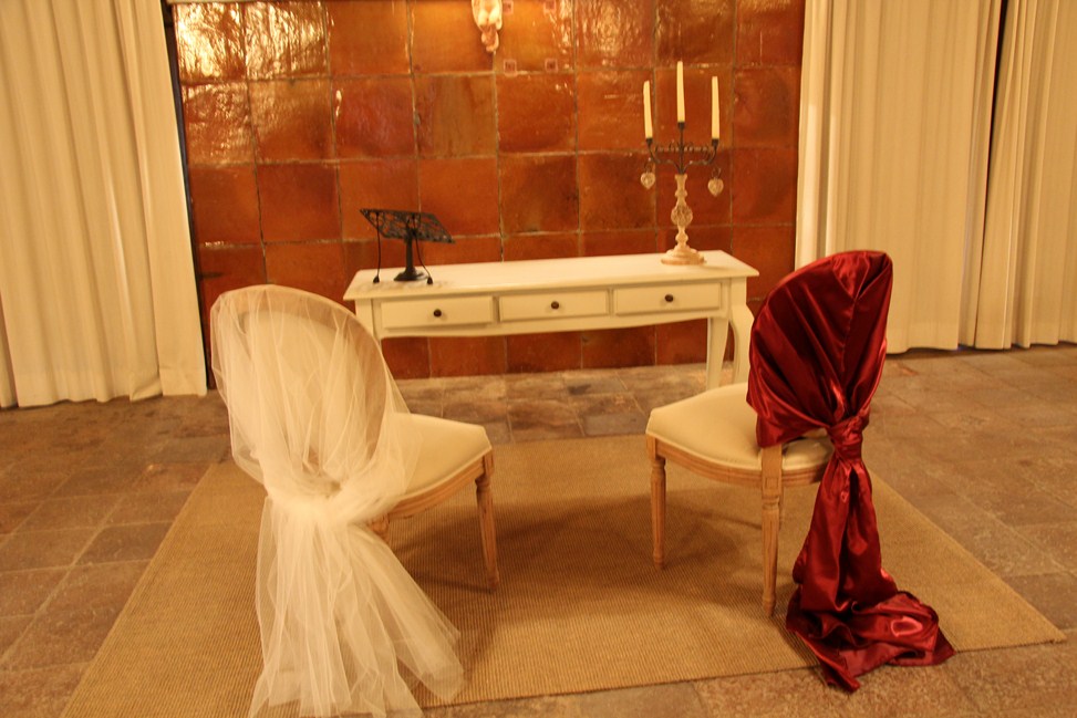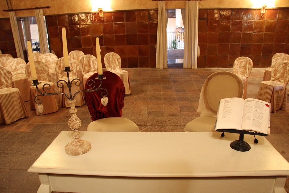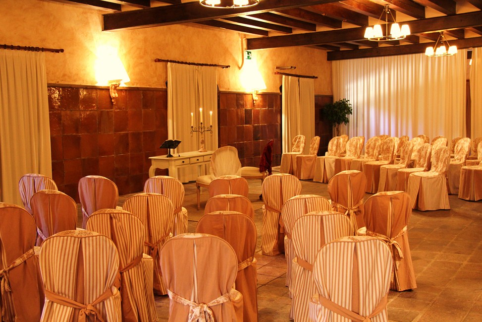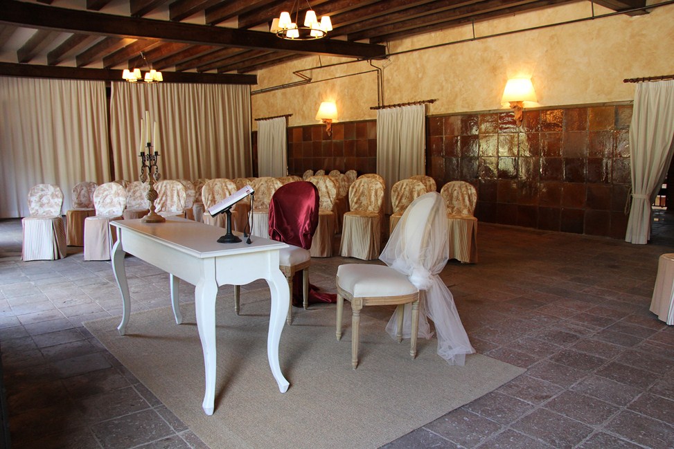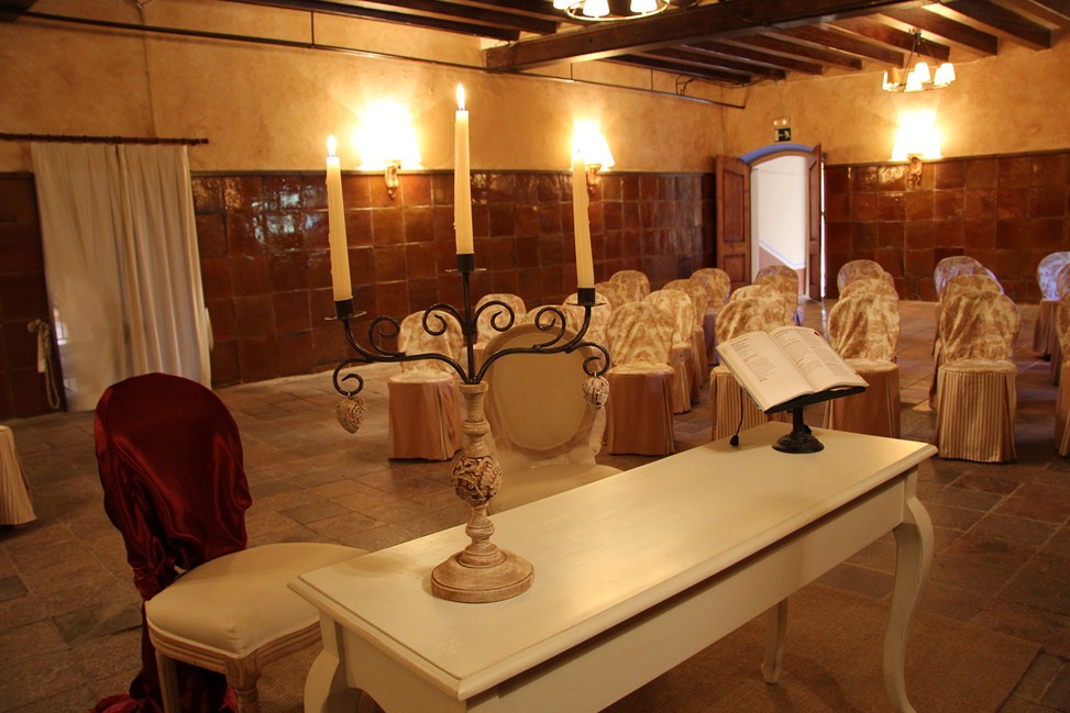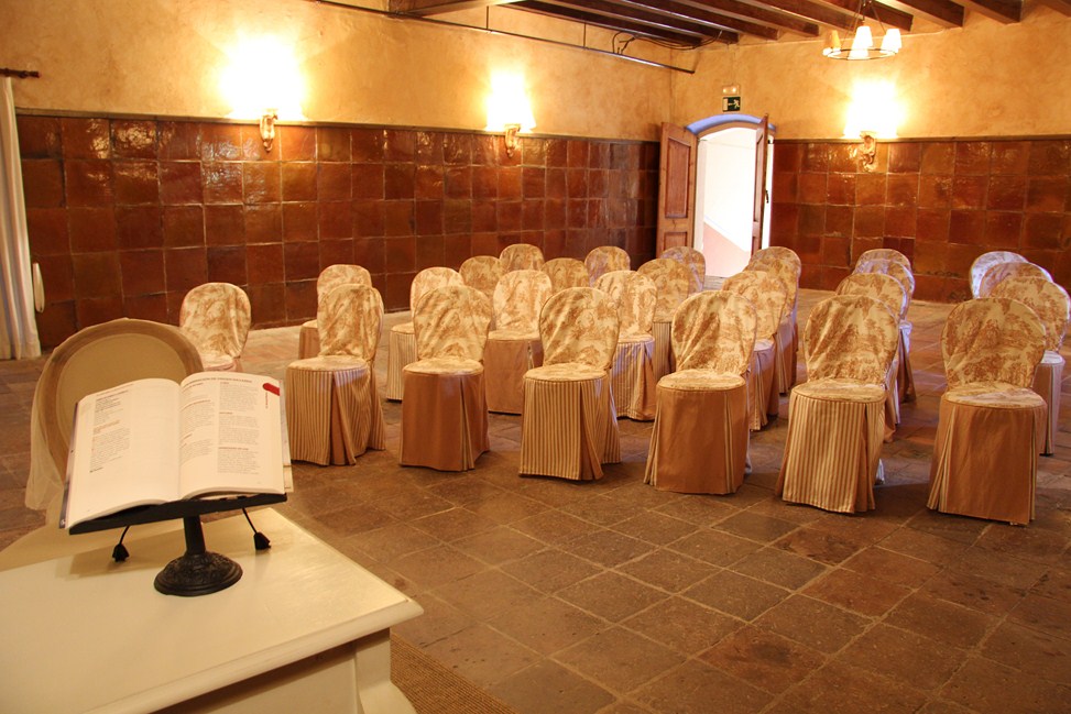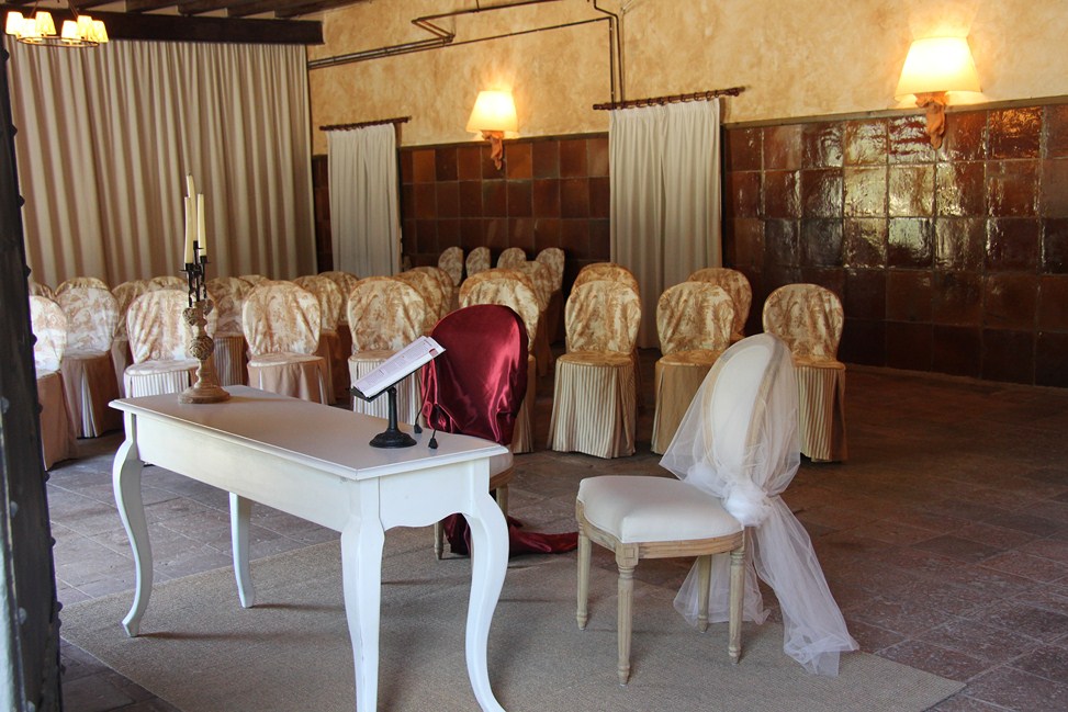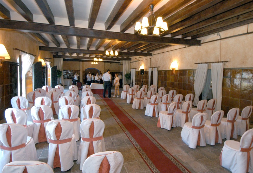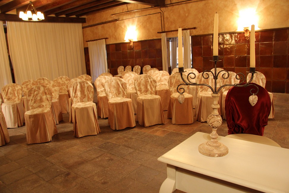 La sala de tines, amb entrada directe des del pati, s'hi pot fer l'aperitiu a cobert en cas de pluja o celebrar-hi la cerimònia civil, quedant independent del celler. Es denomina sala de tines perquÈ antigament era l'espai on es descarregava el raïm, es premsava i s'evocava als cubs per a la fermentació del most. Avui en dia les entrades als cubs estan tancades però el terra es manté l'original, per aquest motiu el terra és irregular però permet respirar l'olor a celler autèntic.